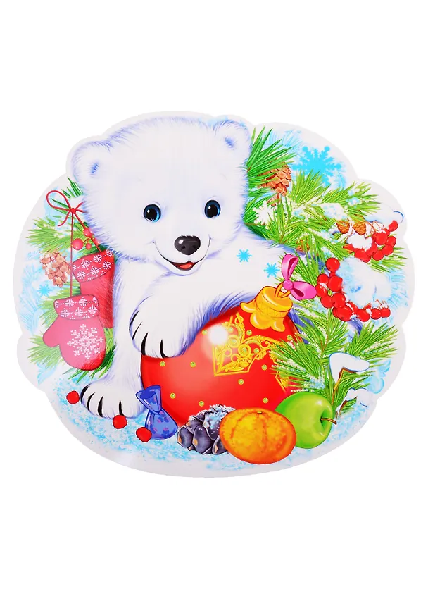 Плакат вырубной А4 Медвежонок в дарах зимы (с уф-лаком) (картон) (упаковка)