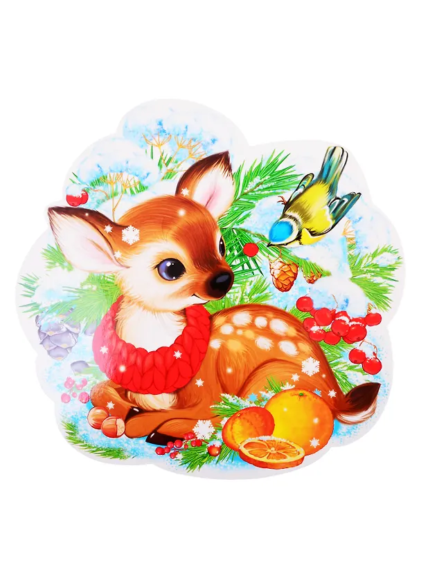 Плакат вырубной А4 "Олененок в дарах зимы"