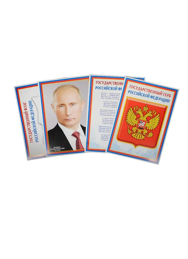 Плакаты А4 (4 шт.) с символикой РФ (Флаг, Герб, Гимн, Президент), Сфера