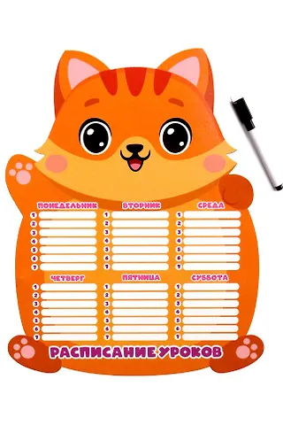 Планер магнитный. Расписание уроков с маркером. Милый котик