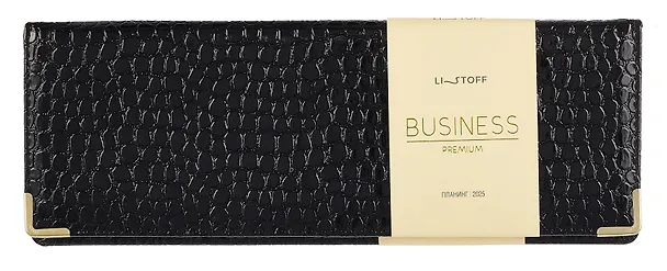 Твёрдая плотная обложка из искусственной кожи под змеиную. Тактильно-приятный глянец. Эта обложка имеет металлические уголки. Это защитит от ударов и истираний. Планинг датированный. Листы довольно плотные с желтоватым оттенком. Хороший шрифт, места для ежедневных записей достаточно. Есть календарь целиком на 2025 и 2026 год. Это очень удобно. Есть нумерации недель в году.
