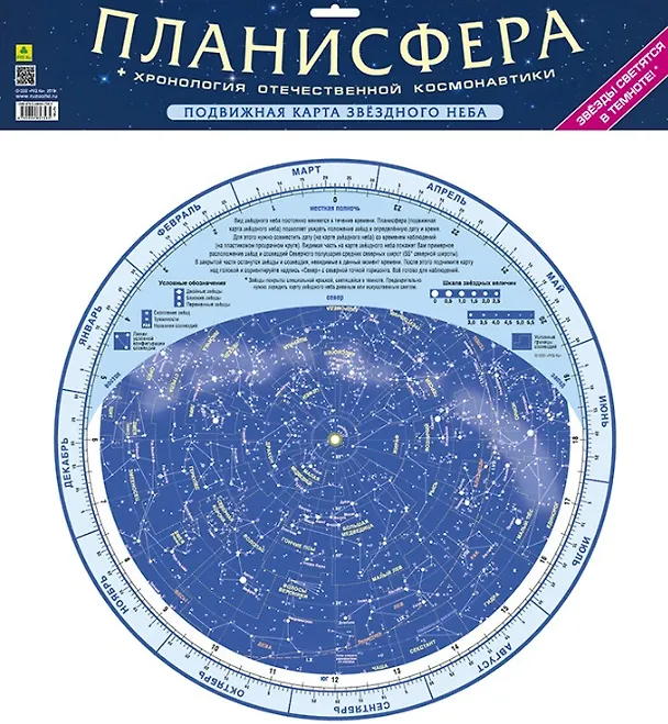 Положение звездного неба постоянно меняется в течение времени. Планисфера (подвижная карта звездного неба) позволяет увидеть положение звезд в определенную дату и время. Для этого нужно совместить дату (на карте звездного неба) со временем наблюдений (на пластиковом прозрачном круге). Видимая часть на карте звездного неба покажет Вам примерное расположение звезд и созвездий Северного полушария средних северных широт. В невидимой части останутся звезды и созвездия невидимые в данный момент времени. После этого поднимите карту над головой с сориентируйте надпись «Север» с северной точкой горизонта. Все готово для наблюдений. Наблюдать за звездным небом лучше всего в ясную погоду при слабом лун