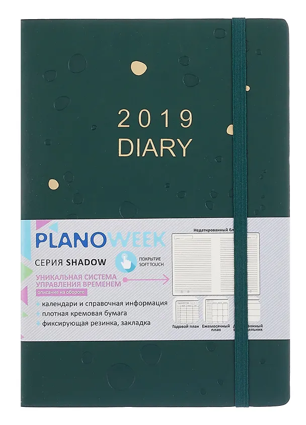 Создан на основе уникальной системы эффективного планирования и состоит из страниц для ежемесячного и годового плана; блока датированного еженедельника; недатированного блока для свободных записей, а также содержит календарную сетку на 4 года и справочную информацию.