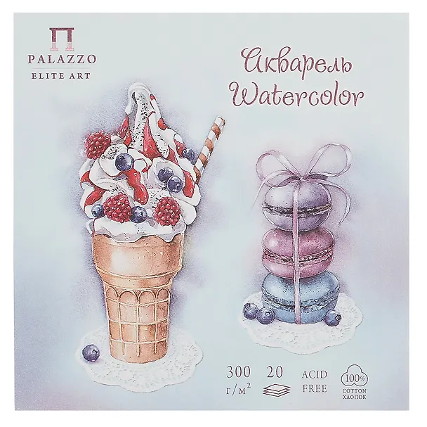 Планшет для акварели 200*200 20л "Кондитерская" голубой, 300г/м2, 100%хлопок