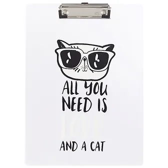 Очень классный модный планшет с рисунком ввиде делового котика. Мне на нем комфортно писать и рисовать. Он не деформируется. Легко вытирается, если я случайно запачкаю его карандашом или ручкой. Зажим плотный, прикреплён прочно. Отлично фиксирует необходимый документ. Новая покупка мне очень нравится. Настолько она стильная и удобная. Иногда на рабочем столе прикрепляю к нему документ, с которым работаю, чтобы он никуда не делся.