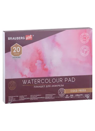Планшет для акварели ХЛОПОК 100% 300г 190х270мм склейка 4 стороны ср. зерно 20л, BRAUBERG ART,113240
