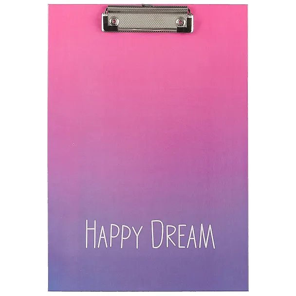 Очень «вкусный», сочный цвет. Надпись – как напоминание стремиться к своим мечтам. Планшет обклеен глянцевой бумагой, выполнен достаточно качественно. Зажим оптимально тугой, держит листы крепко. В целом покупкой довольна.