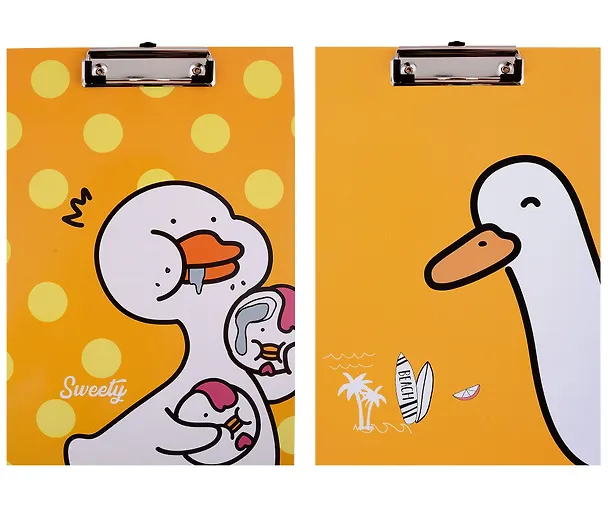 Обаятельный гусь-обнимусь теперь украшает принадлежности для школы и офиса! Доска-планшет формата А4 фиксирует до 80 листов. Металлический прижим в верхней части обеспечивает плотное прилегание документов. Благодаря твёрдому корпусу из плотного картона с ПВХ-покрытием записи удобно даже делать на весу.