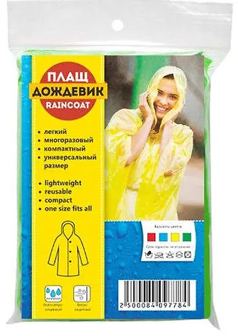 Плащ-дождевик АКМ (взрослый) тонкий, зеленый VS1032A-GREEN