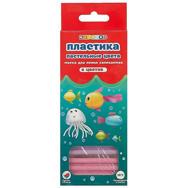 Набор пластики пастельных цветов "Цветик" предназначен для лепки и моделирования. Обладает уникальными свойствами: отличная пластичность в сочетании со способностью отвердевать при термообработке, нелипкость, не пачкает руки. После отверждения может окрашиваться акриловыми красками. Пластика легко снимается с одежды и коврового покрытия, а остаток смывается водой с мылом.