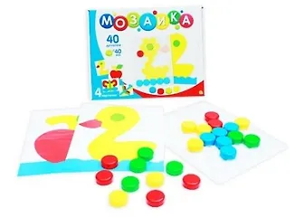 Пластиковая игра, Серия Собиралкин Мозаика 40 фишек, 40мм с цвет. (Прозр. Поле, 4 картинки)