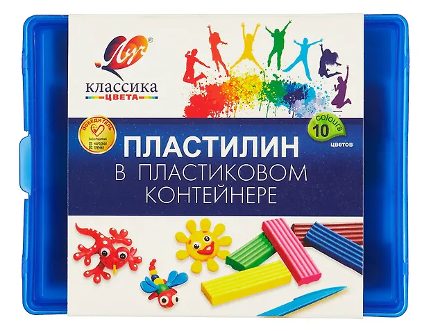 самый главный плюс это очень удобный контейнер, в портфеле не занимает много места, если крышку перевернуть выпуклой стороной то пластилин можно складывать в два ряда друг на друга. стандартный набор цветов для любого рода поделок ниченг добавлять не нужно. стек а комплекте