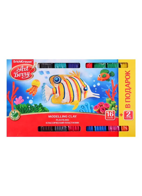 Классический пластилин ArtBerry® с Алоэ Вера средней пластичности создан для решения широкого круга творческих задач и для развития мелкой моторики. Экстракт Алоэ Вера во время лепки заботится о комфорте детских рук. Пластилин отлично сохраняет свою форму и не застывает на воздухе, а также не прилипает к рукам и не пачкает одежду. Улучшенная цветовая палитра содержит яркие насыщенные цвета, которые отлично смешиваются между собой, создавая новые оттенки. Удобная внутренняя пластиковая подложка (коррекс) более практична, на ней, в отличие от картона, не остаётся масляных пятен. Каждый брусок имеет индивидуальную упаковку «flow-pack», которая надежно сохраняет товарный вид и пластичные свойст
