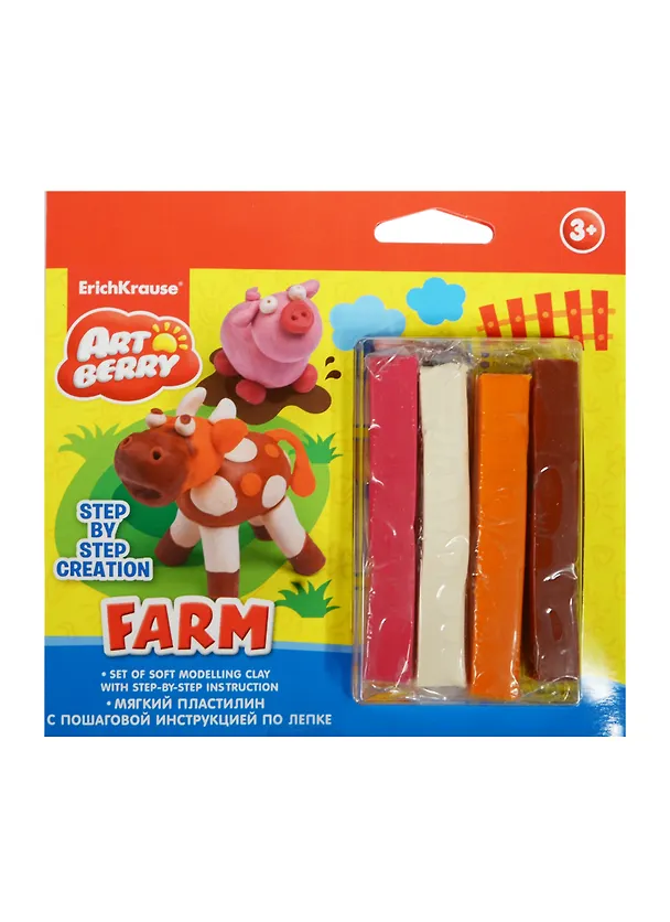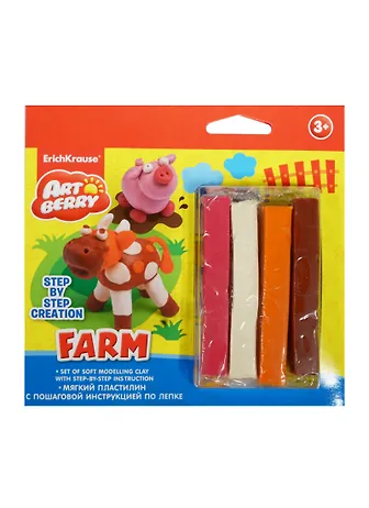 Пластилин Erich Krause, ArtBerry, 4цв Farm мягкий пластилин с пошаговой инструкцией по лепке 38543""