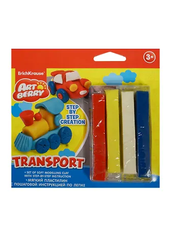 Пластилин Erich Krause, ArtBerry, 4цв Transport мягкий пластилин с пошаговой инструкцией по лепке 38539""