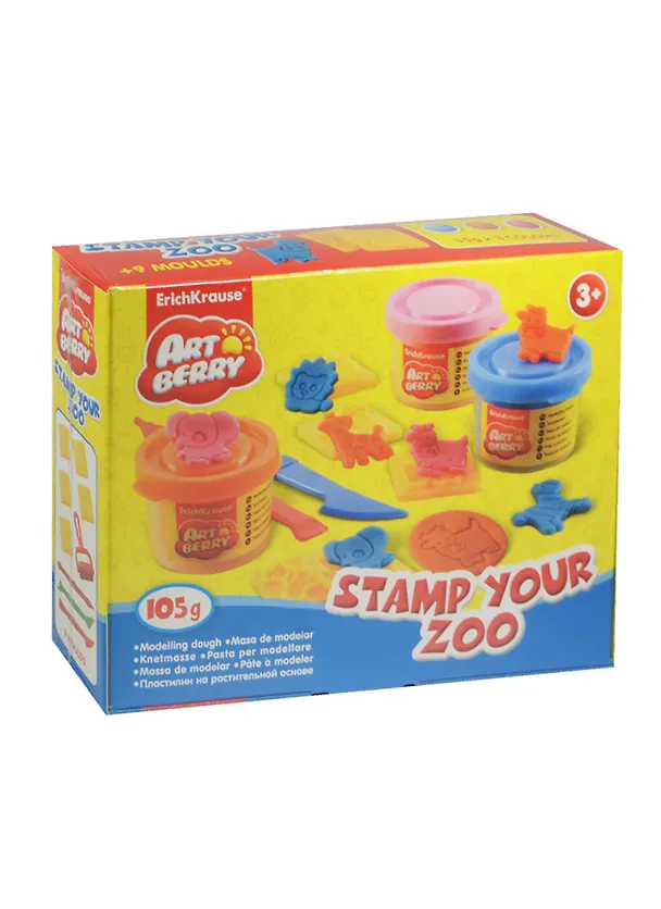 Пластилин, Erich Krause, Stamp Your Zoo", 3 цвета, 35 гр, на растительной основе, в блистере"