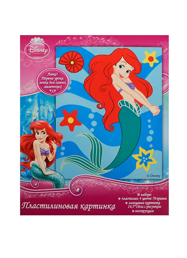 Пластилин. карт. по номерам Ариэль (24378) (14,5х18см) (+мягк. пластилин/4цвх70гр) (Disney Принцесса) (упаковка)