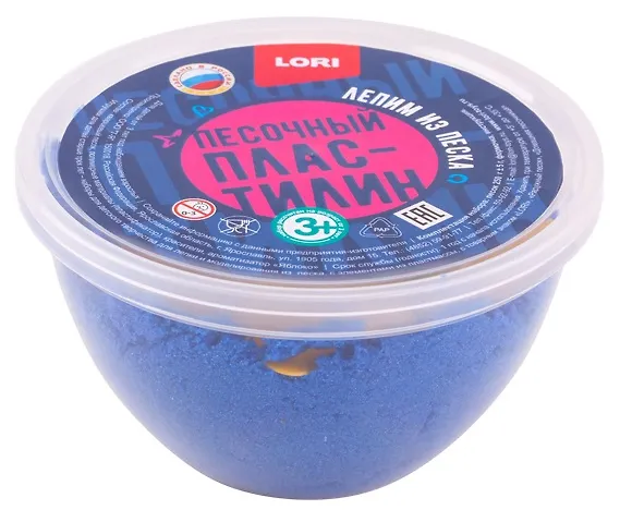 Пластилин песочный Синий (250 гр) (4+) (Пл-005) (банка) (Lori)