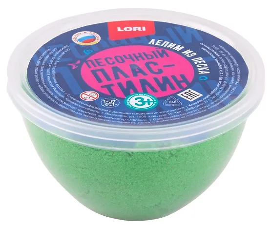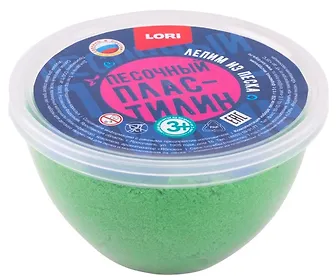 Пластилин песочный Зеленый (250 гр) (4+) (Пл-004) (банка) (Lori)