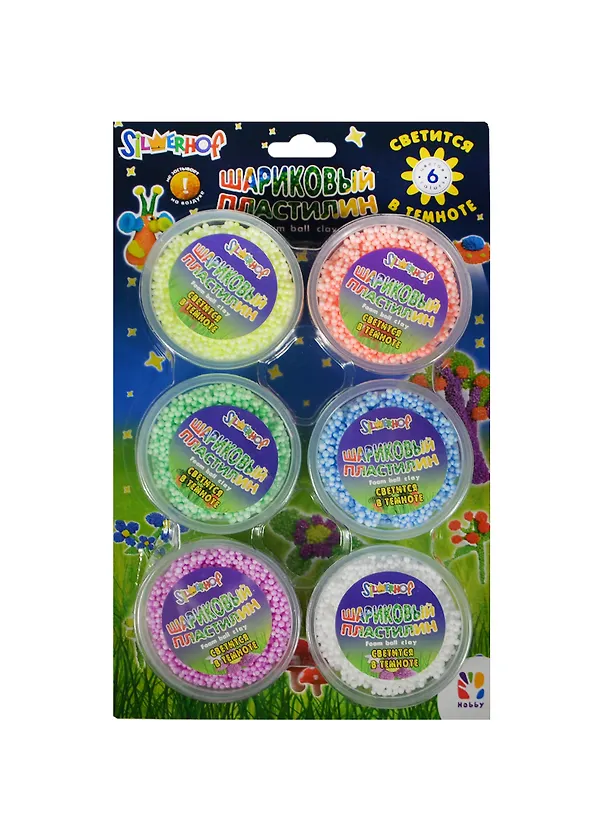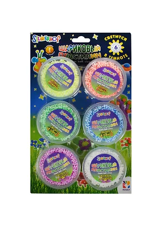 Пластилин шарик. не застыв. крупнозерн. свет. в темноте (956124-06) (6цв.) (90гр.) (Hobby) (3+) (блистер)