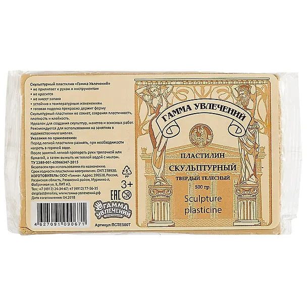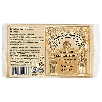 Пластилин скульптурный 500г "ГАММА УВЛЕЧЕНИЙ" телесный, твердый, Гамма увлечений