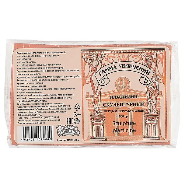 Пластилин скульптурный 500г "ГАММА УВЛЕЧЕНИЙ" терракотовый, твердый, Гамма увлечений