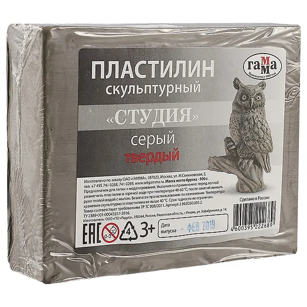 Скульптурный твёрдый пластилин ГАММА серии «Студия» серого цвета. Прекрасно держит форму и устойчив к перепадам температуры, не оставляет пятен и не липнет к рукам. Не токсичен: не содержит серу, без выраженного химического запаха. Скульптурный пластилин ГАММА помещён в вакуумную упаковку. Вес бруска — 500 г.