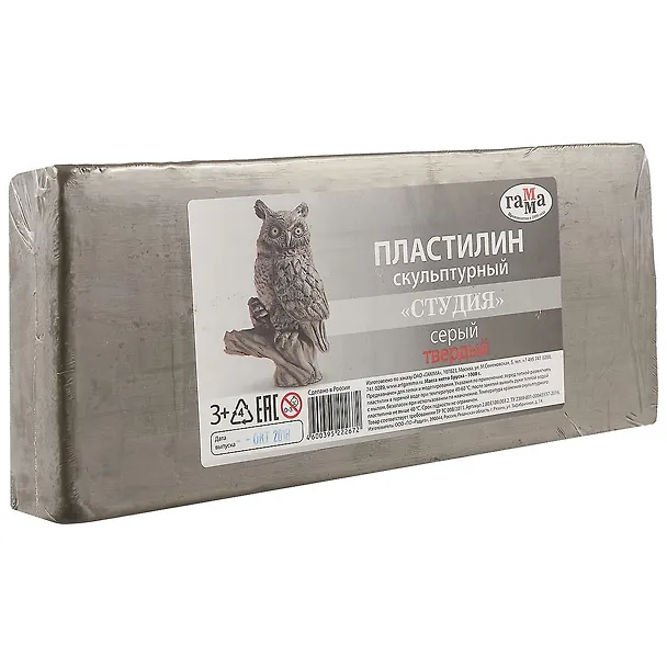 Твёрдый серый пластилин «Студия» ГАММА — идеальный материал для скульпторов.