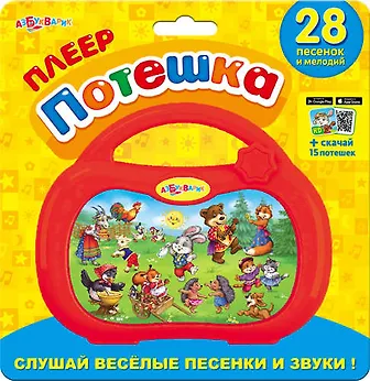 Суперновинка! Плеер оригинальной формы – для самых маленьких! Нажимай на зверят – слушай песенки-потешки, пой и танцуй вместе с Заинькой, Мишкой косолапым, Лисой-красой и другими любимыми героями. Всего в плеере собрано 28 народных песенок и мелодий.