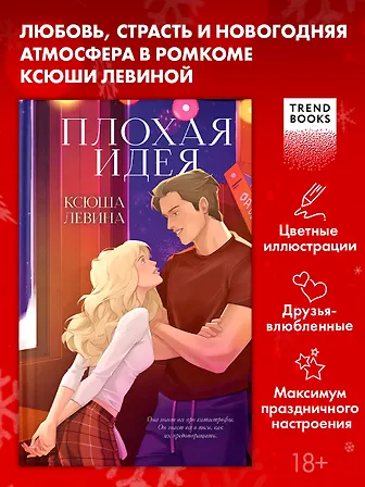 «Плохая идея» — идеальный ромком для уютного зимнего вечера в ожидании праздников. Дружба, влюбленность, безупречный парень — никаких ред-флагов и слез! Яркая новогодняя обложка, четыре цветные иллюстрации внутри и красочные форзац и нахзац в новинке от Ксюши Левиной — автора хитов «Держись от него подальше» и «Моя Гелла».