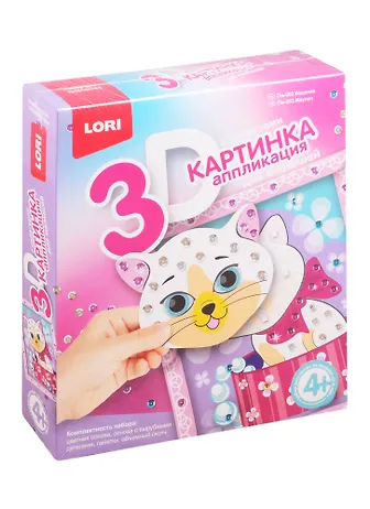 Пм-003 3D картинка Аппликация для малышей с пайетками Кошечка (набор для творч.) (LORI) (4+) (коробка)