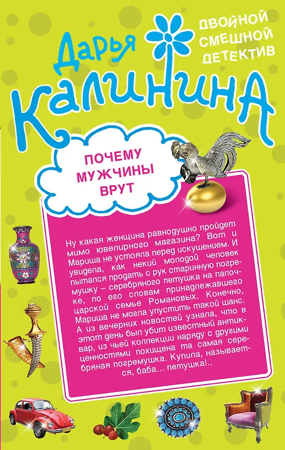 .Ну, какая женщина равнодушно пройдет мимо ювелирного магазина? Вот и Мариша не устояла перед искушением. И увидела, как некий молодой человек пытался продать с рук старинную погремушку - серебряного петушка на палочке, по его словам, принадлежавшего царской семье Романовых. Конечно, Мариша не могла упустить такой шанс. А из вечерних новостей узнала, что в этот день был убит известный антиквар, из чьей коллекции, наряду с другими ценностями, похищена та самая серебряная погремушка. Купила, называется, баба… петушка!..