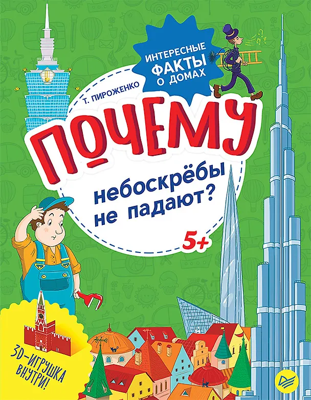 Почему у домов треугольные крыши? Почему фонари загораются сами, а воду из-под крана пить нельзя? Почему дворники работают по утрам, а мусор надо сортировать? В этой книге ребёнок найдёт ответы на все свои "почему" об устройстве дома и улиц. Яркие картинки и забавные задания помогут надолго занять вашего юного инженера, а в конце книги его ждёт сюрприз – бумажная модель Спасской башки, которую можно собрать самому!