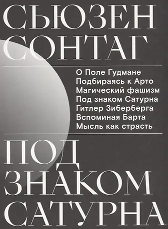 В сборник вошли наиболее важные критические эссе, написанные Сьюзен Сонтаг с 1972 по 1980 год. Помимо пронзительных воспоминаний о Ролане Барте и Поле Гудмане и эссе о Вальтере Беньямине и Антонене Арто, «Под знаком Сатурна» включает в себя критику любимого режиссера Гитлера Лени Рифеншталь, а также блистательный анализ антифашистского фильма Ханса-Юргена Зиберберга. В своих как всегда откровенных текстах Сонтаг рассуждает о смерти, искусстве, истории, воображении и писательстве как таковом.