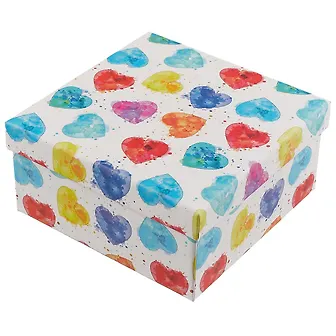 Коробку «Акварелька» украшают яркие сердечки разных цветов. Посмотрите, как красиво!