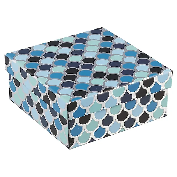 Коробку «Тритон» украшают чешуйки разных оттенков синего с серебряным контуром. Выглядит очень красиво!