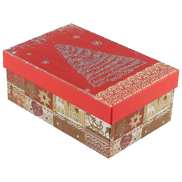 Коробку «Ёлочка» украшает ажурное белое дерево на красном фоне. Посмотрите, как красиво!