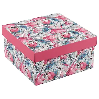 Эту коробку украшают нежно-розовые цветы и павлиньи перья. Они порадуют как юную принцессу, так и девушку постарше.