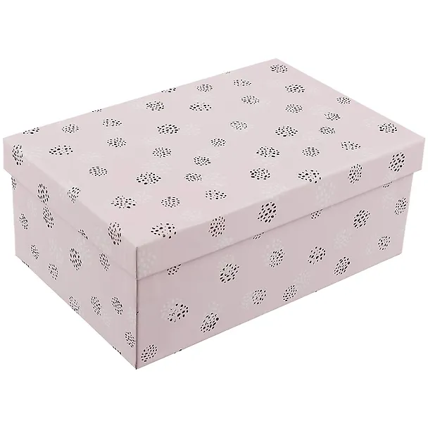Розовая коробка с белыми и чёрными крапинками дополнит подарок для принцессы любого возраста.