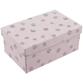 Розовая коробка с белыми и чёрными крапинками дополнит подарок для принцессы любого возраста.