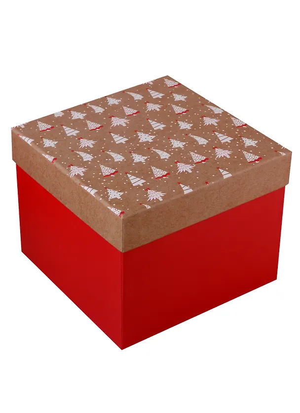 Коробка новогодняя "Елочки на крафте"
