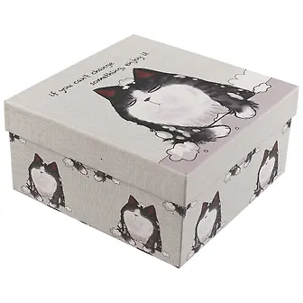 Эту коробку украшает забавный пухленький котик. Разве можно не влюбиться в эту мордашку?