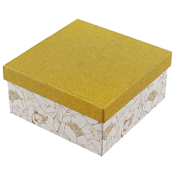 Коробку «Золотые цветы» украшает крышка с блёстками и нежные стебельник цветов. Посмотрите, как красиво!