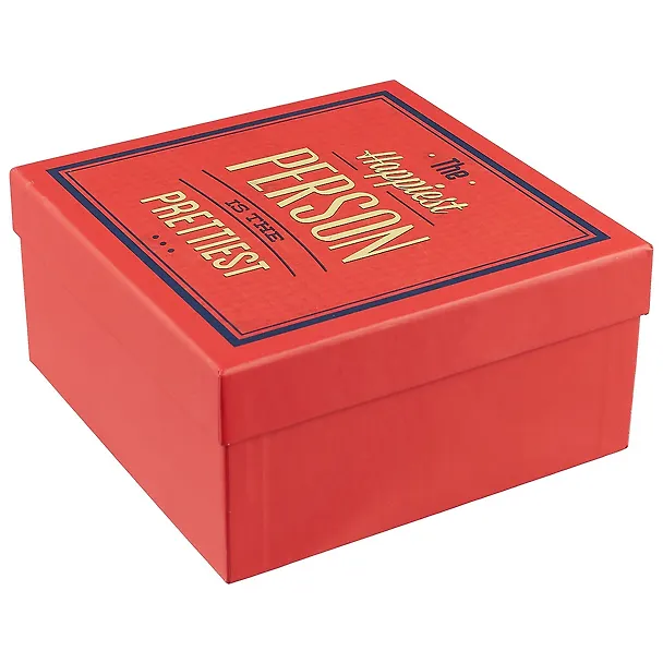 Эту красную коробку украшает яркая мотивирующая надпись. Коробка подойдёт для подарка мечтателю любого возраста.