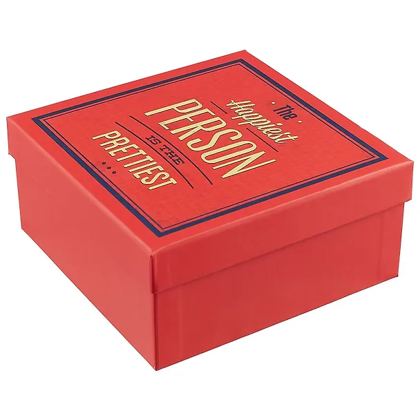 Эту красную коробку украшает яркая мотивирующая надпись. Коробка подойдёт для подарка мечтателю любого возраста.