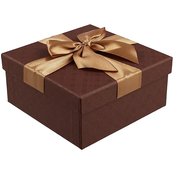 Коробка подарочная "Коричневый ромб" 15*15*7см, декор. бант, картон