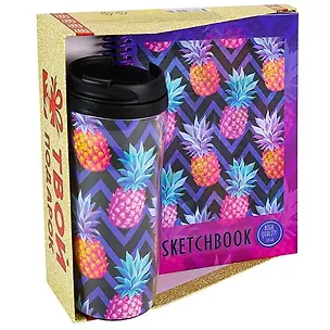 Подарочный набор Ананасы (скетчбук а5, 64л, 100г, 7БЦ, спираль слева +термо 350 мл) ПН-1475