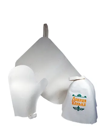 Подарочный набор для бани 3пр.(Шапка Добрая банька, коврик, рукавица) (397-066)