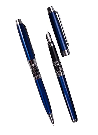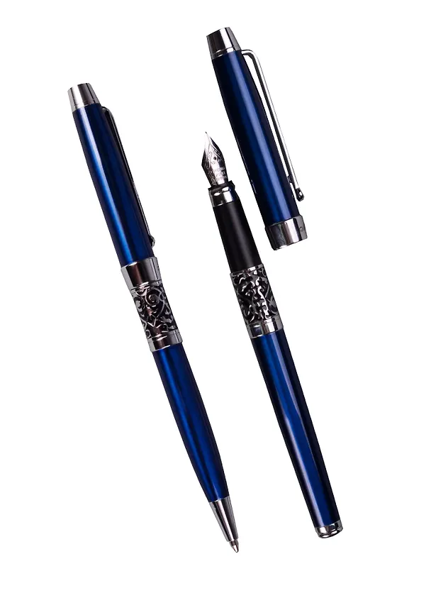 Подарочный набор ручек Venezia включает перьевую и шариковую ручки синего цвета. Элегантная форма и отделка придает ручкам особый изысканный шарм. Исключительный восточный стиль этого набора подчеркивает корпус, декорированный "серебряным кружевом". Шариковая ручка снабжена поворотным механизмом подачи стержня.