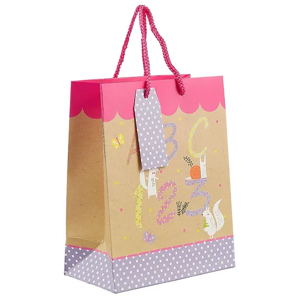 Пакет «Алфавит» сделан из плотной бумаги и украшен принтом с яркими буквами и забавными животными. Такой пакет подойдёт для упаковки подарка маленькому имениннику.